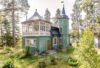 The second image highlights the kitchen, where the dark oak cabinetry takes center stage. The rich wood grain adds warmth and depth, contrasting beautifully with the sleek, stone countertops. The top of the upper cabinets displays a curated selection of ceramics and glassware. Natural light floods the space, enhancing the kitchen’s inviting and practical design.
