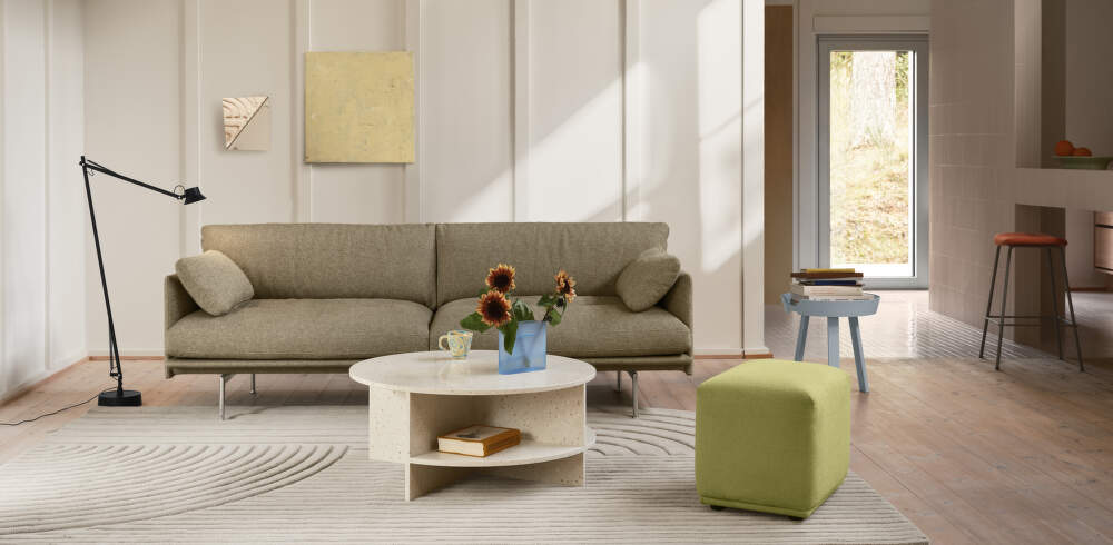 The Outline Sofa is a cornerstone of the Muuto collection. The Soft version reimagines its architectural silhouette through a lens of supple comfort – while retaining its elegant frame, the loose upholstery and generous cushions are designed to let you truly sink into the Outline Soft experience.